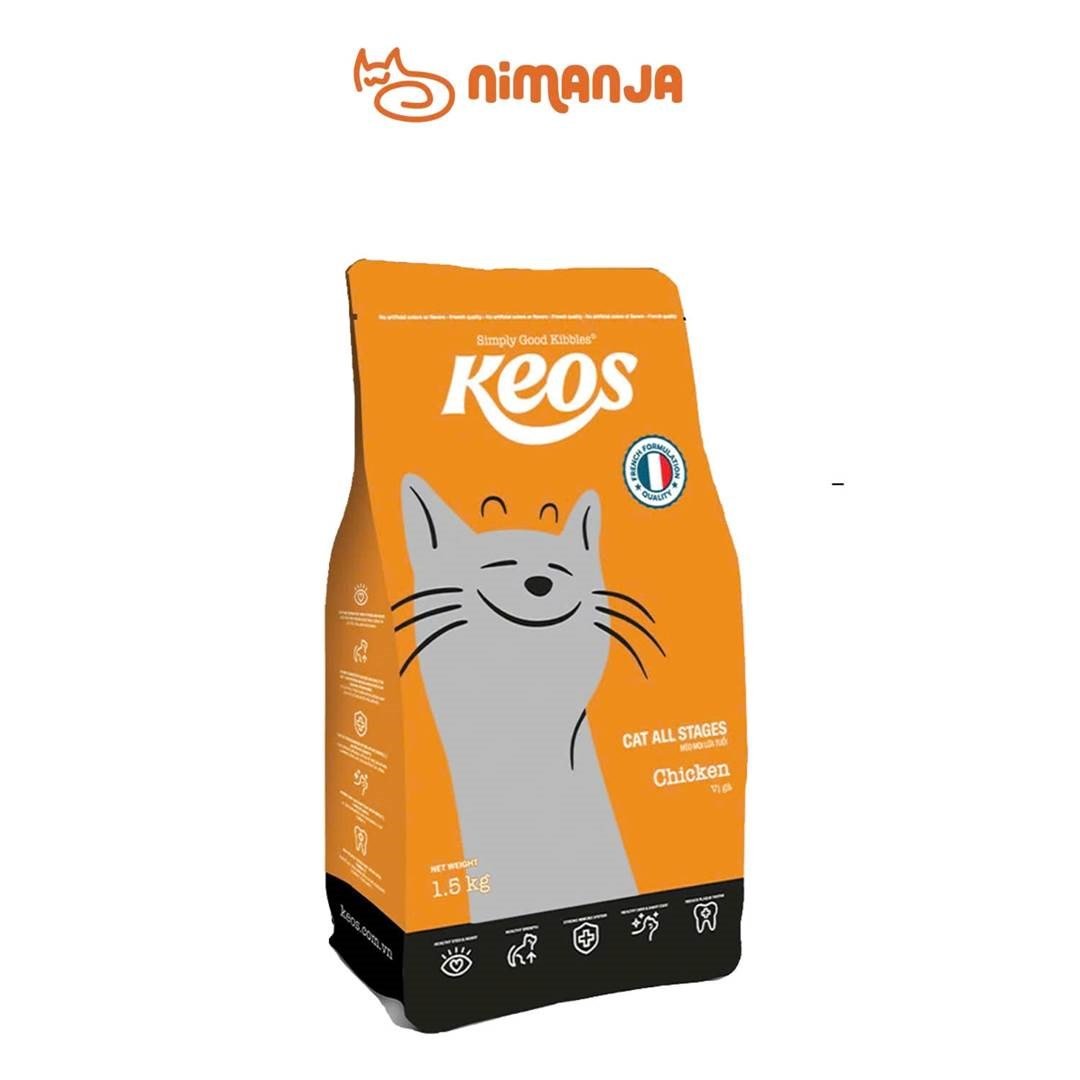 KEOS hạt cho mèo vị gà dành cho mọi lứa tuổi 1.5 kg có hương gà thơm ngon, cung cấp đạm chất lượng giúp duy trì cơ bắp và năng lượng hoạt động hàng ngày. Công thức dinh dưỡng cân đối hỗ trợ hệ tiêu hóa khỏe, da lông bóng mượt và phù hợp cho mèo ở mọi giai đoạn trưởng thành.