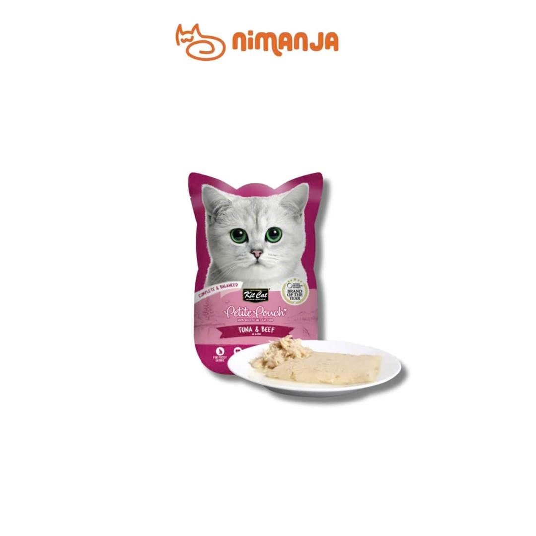 Pate cho mèo Kit Cat Petite Pouch vị Cá ngừ và Bò 70g là một loại thức ăn ướt hoàn chỉnh và cân bằng, nổi bật với sự kết hợp của cá ngừ và thịt bò trong nước sốt (gravy/aspic) thơm ngon, được thiết kế để làm hài lòng cả những chú mèo kén ăn nhất.