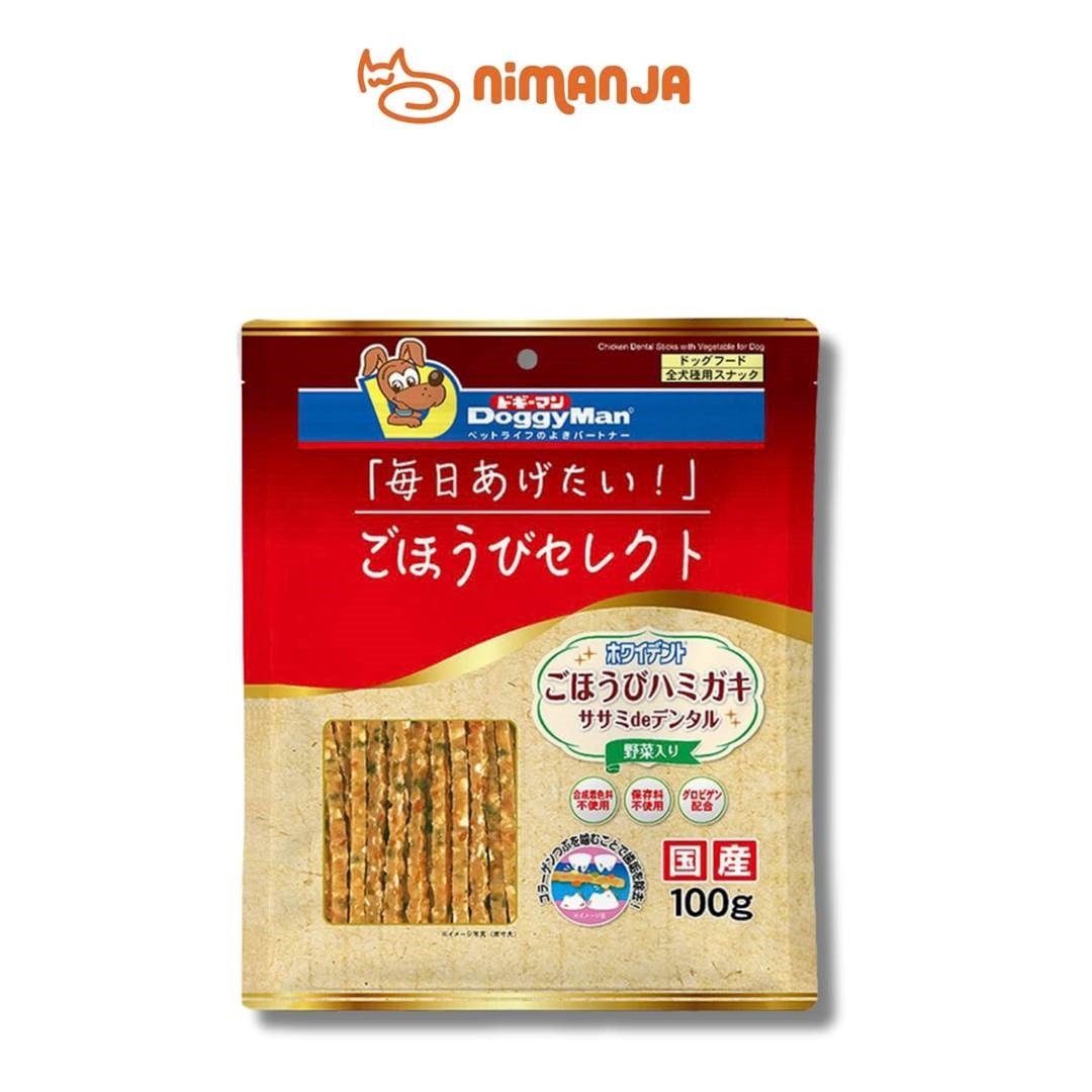 Que gà Collagen rau củ 100g (thương hiệu DoggyMan) là món ăn vặt bổ dưỡng cho chó, kết hợp ức gà, hạt collagen và rau củ (cà rốt, rau bina). Sản phẩm giúp làm sạch mảng bám, chắc răng, hỗ trợ da lông khỏe mạnh, không chất bảo quản và chứa Globigen tốt cho sức khỏe nha chu.