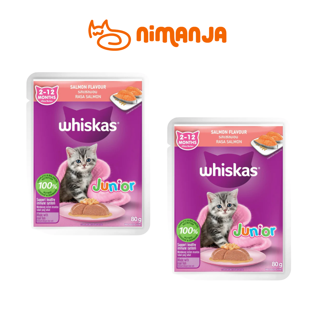 Pate cho mèo con Whiskas Junior vị cá hồi (dạng gói ướt 80g) là thức ăn hỗn hợp hoàn chỉnh và cân bằng, được đặc chế dành riêng cho mèo con từ 2 đến 12 tháng tuổi.